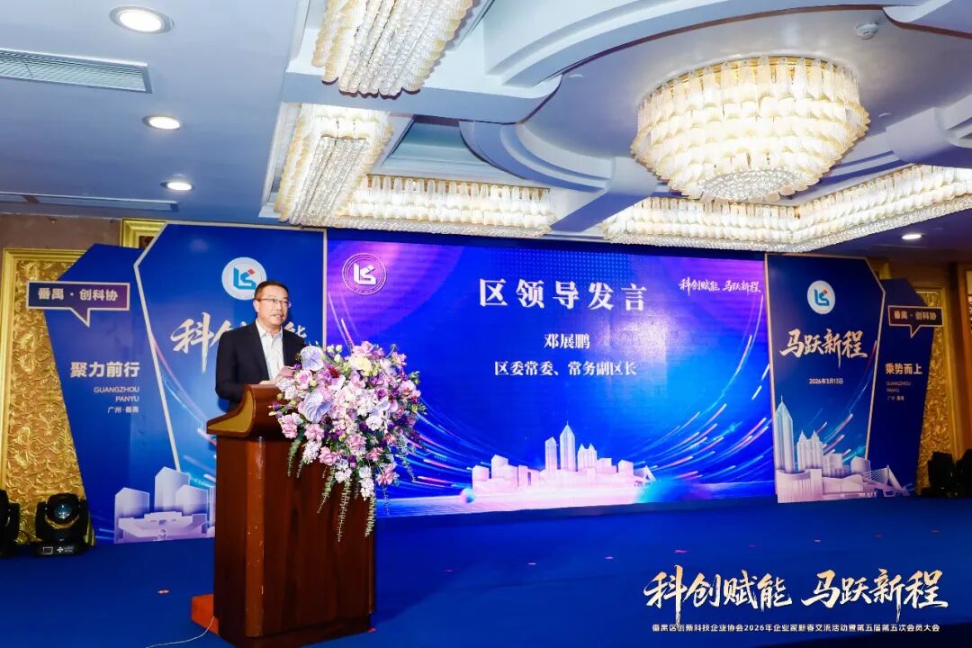 2026年3月13日,番禺区创新科技企业协会(以下简称:区创科协)举行“科创赋能马跃新程”2026年企业家新春交流活动。番禺区区委副书记、区长陈小华,区人大常委会主任覃海深,区委常委、统战部部长陈建任,区委常委、常务副区长邓展鹏,副区长杨少华,区政协副主席、党组副书记冯润胜,区科工商信局局长史飞,区民政局局长朱国华,区委统战部副部长、区工商联党组书记、常务副主席岑镜洪等领导以及区属相关职能部门负责人莅临指导本次活动。